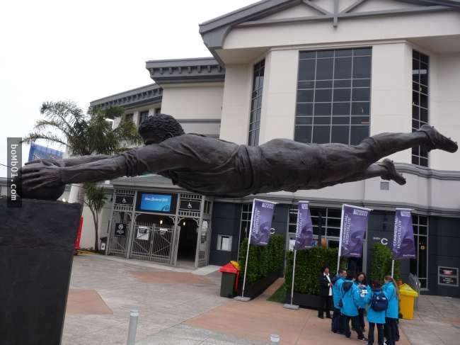 Bức tượng điêu khắc ở New Zealand về “cầu thủ” nhất định không buông tay. (Có lẽ sợ sẽ rơi xuống).