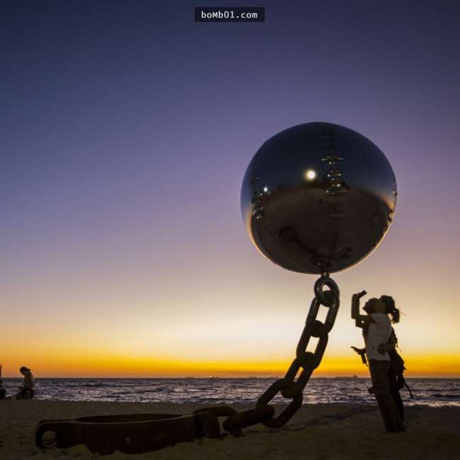 Tại Úc, một quả bóng khổng lồ được thiết kế độc đáo lơ lửng trên bờ biển thu hút mọi ánh nhìn.