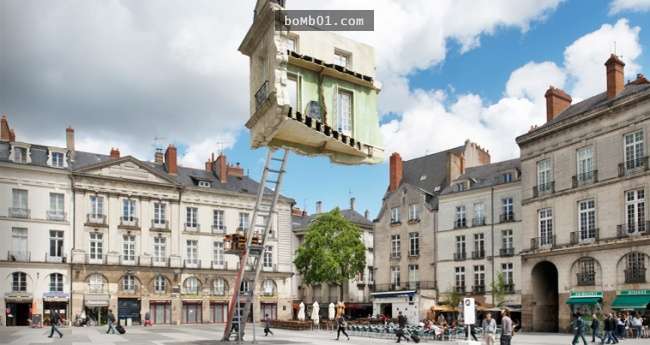 Tác phẩm điêu khắc “Căn nhà nổi” trong không khí tại Pháp.