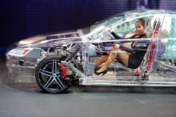 Ảnh chụp 1 chiếc xe hơi trong suốt tại sự kiện triển lãm.