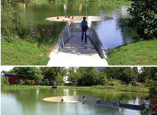 1. Không đâu có được chiếc ghế đá chìm dưới lòng hồ độc đáo như thế này. Giữa tiết trời nắng vàng, gió nhẹ được ngồi ngắm cảnh giữa hồ nước trong xanh thì còn gì tuyệt vời hơn.