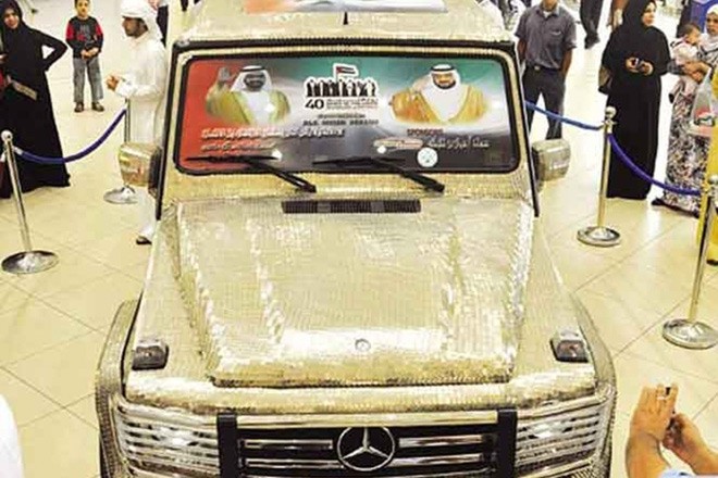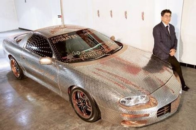 Tarek Javaid, một tay chơi ở Tiểu các vương quốc Ả rập (UAE) đã dành hơn 3.000 giờ để gắn 33.000 đồng xu dirham lên chiếc SUV Mercedes. Chiếc xe có vẻ ngoài sáng loáng này ra đời để kỷ niệm quốc khánh lần thứ 40 của UAE. |