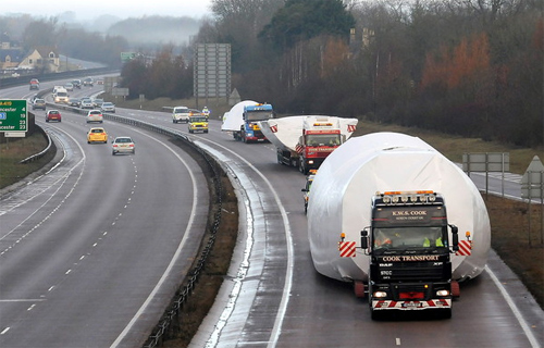Phần thân máy bay và các bộ phận khác của một chiếc Boeing 747 trên đường vận chuyển.