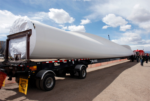 Cánh turbin gió nằm trên xe chuyên chở. |