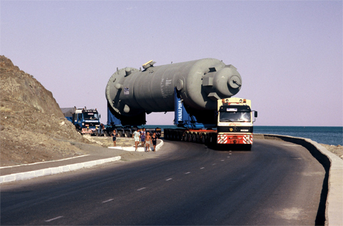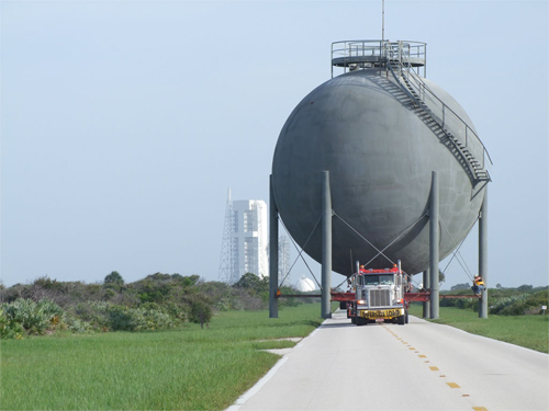 Xe đầu kéo chở một bể chứa oxy lỏng dung tích 473.200 lít. |