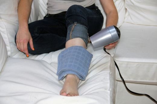 Hãy nhớ tới những lúc bạn bị đau cơ hay trật tay, trật chân và phải dùng khăn ấm để chườm nóng vết thương. Lúc này, khăn sẽ rất mau bị nguội đi và bạn phải nhúng nước liên tục. Có một cách hay hơn đó chính là dùng máy sấy sấy vào khăn chườm, bạn sẽ giữ nóng được lâu và không phải di chuyển quá nhiều.
