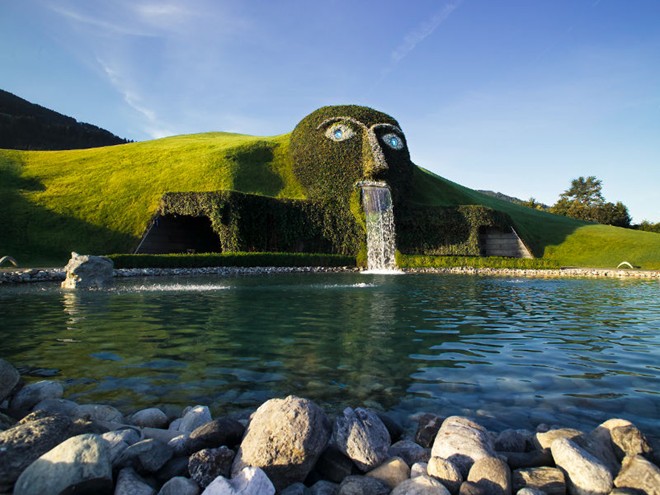 Đài phun nước Swarovski (Innsbruck, Áo): Swarowski là một bảo tàng với một đài phun nước có hình mặt người được tạo từ cỏ và rêu. Nước chảy ra từ miệng.