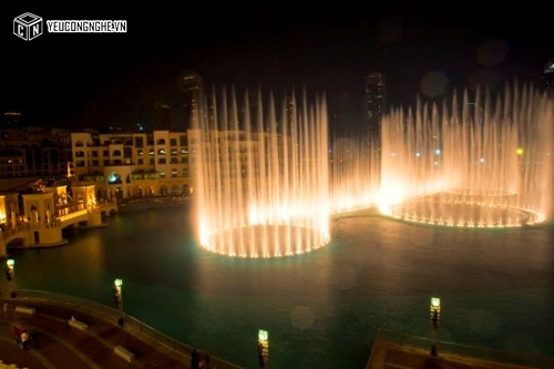 Đài phun nước Dubai, Các tiểu vương quốc Ả Rập: nằm trong lòng hồ Burj Khalifa rộng 12 héc-ta, đài phun nước Dubai được lắp 6.600 bóng đèn với 25 máy chiếu màu có thể tạo nên quang phổ 1000 màu. Cột nước của đài phun nước Dubai dài 275m và có chiều cao lên đến 150m. Nó quả là một công trình khổng lồ.. |
