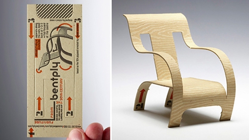 Danh thiếp hình chiếc ghế dựa của một hãng kinh doanh đồ nội thất.