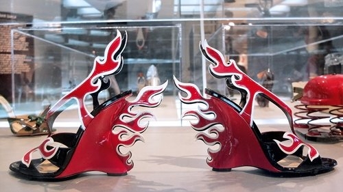 Lấy cảm hứng sáng tác là ngọn lửa cháy bốc cao, Prada đã cho ra đời đôi giày đế xuồng nóng bỏng khiến người ta có cảm giác vội vàng khi mang nó dưới chân.