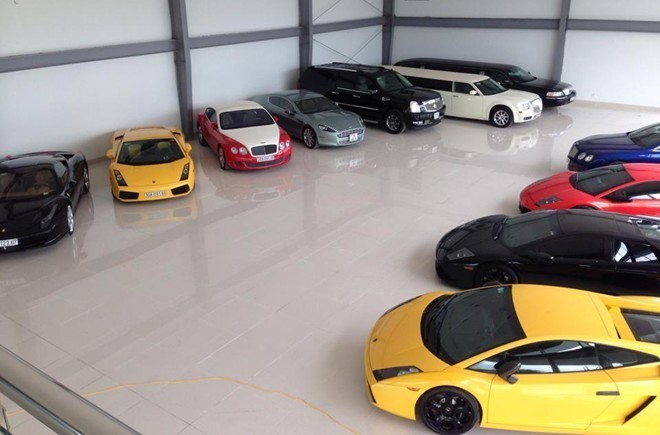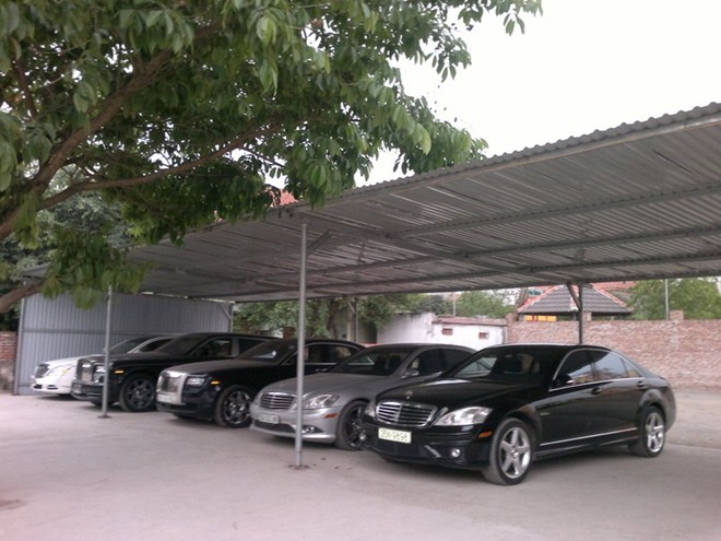 | Chỗ để xe của một đại gia trong lĩnh vực xây dựng ở Ninh Bình có mẫu siêu sang Rolls-Royce Phantom in hình rồng, chiếc đầu tiên trong số 5 chiếc ở Việt Nam với giá trị sau thuế ước tính khoảng 35 tỷ đồng mỗi chiếc. Bên cạnh đó là một chiếc Maybach 62S, Rolls-Royce Ghost và Mercedes-Benz.