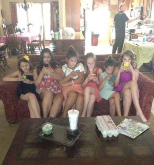 Dưới đây là những hình ảnh rất đáng suy ngẫm của cộng đồng mạng thế giới sưu tầm được về tình trạng nghiện điện thoại di động của con người. Bạn sẽ bất ngờ khi thấy rằng mọi người gần như ít giao tiếp với nhau hơn mà thay vào đó chăm chú vào chiếc điện thoại. Bạn chắc chắn cũng từng gặp những hình ảnh này xung quanh mình