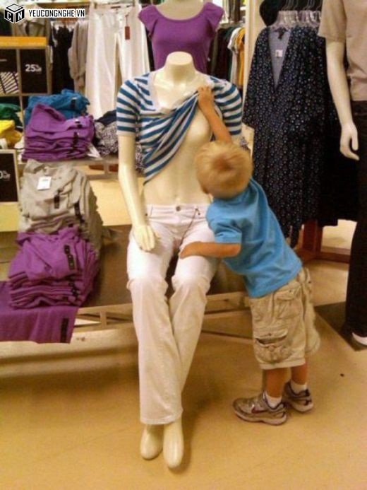 Bé trai này đang tìm gì vậy?