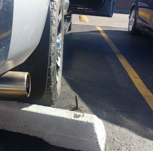 Chỉ cách vài centimet nữa là đi đời lốp xe rồi.