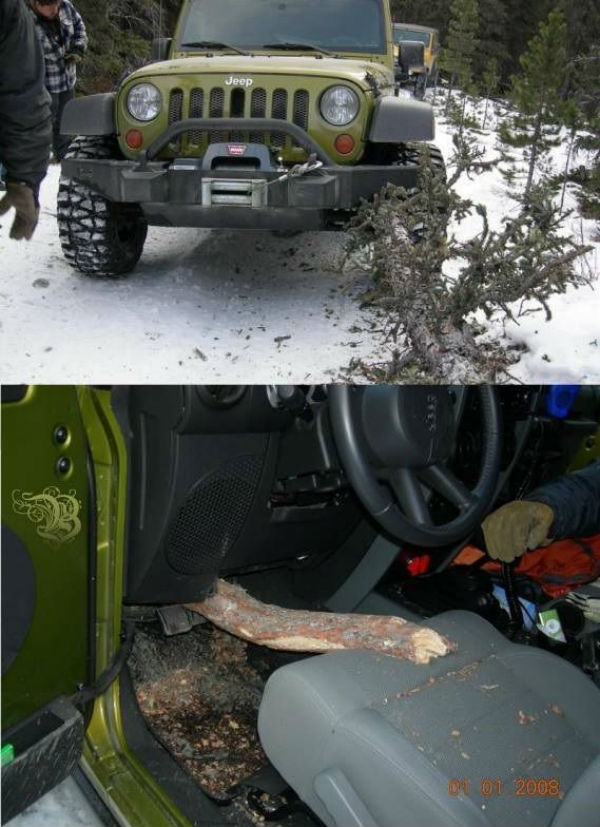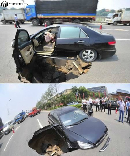 Anh lái xe hẳn phải cảm ơn cuộc đời hoặc gần nhất là cảm ơn hãng sản xuất chiếc đã thiết kế chiếc ô tô này đủ dài để không lọt thỏm xuống hố tử thần này.