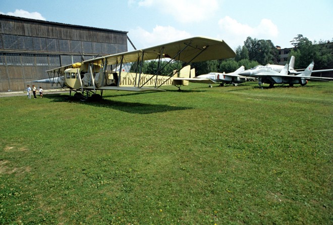 Một chiếc Ilya Muromets được trưng bày tại Bảo tàng Không quân ở Monino, gần Moscow. Ilya Muromets là máy bay ném bom hạng nặng đầu tiên của thế giới do kỹ sư người Nga Igor Sikorsky chế tạo vào năm 1913. Ilya Muromets từng là dòng máy bay chở khách thương mại trước Thế chiến I và máy bay ném bom hạng nặng mà Nga sử dụng trong giai đoạn chiến tranh. |