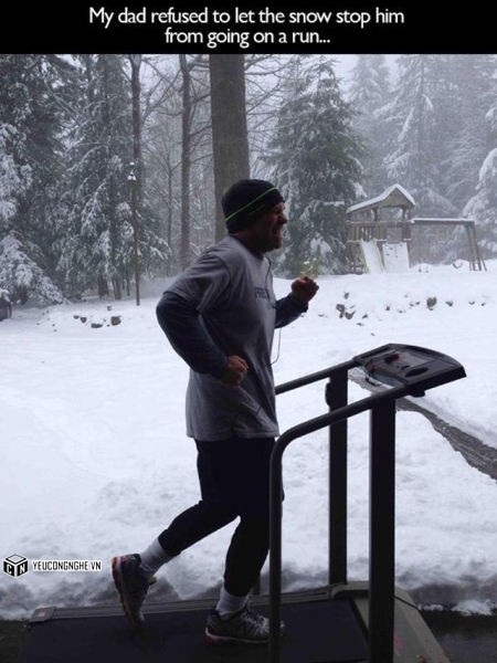 | Tuyết rơi không thể khiến bố ngừng tập thể dục. |