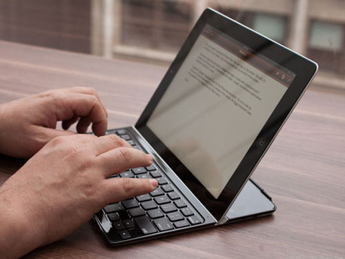 Với iPad, người dùng có thể soạn thảo văn bản bằng cách sử dụng bàn phím cảm ứng trên màn hình. Tuy vậy, bàn phím Logitech Ultrathin Cover được thiết kế bằng nhôm với tính năng Bluetooth sẽ là “người bạn” hữu ích cho những người muốn có những trải nghiệm tốt hơn trong công việc. Khi sử dụng, iPad sẽ được đặt vào rãnh nhỏ và dựng lên, đem đến cho người dùng cảm giác đang thực hiện các thao tác trên laptop quen thuộc.