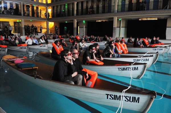 11. Phòng chiếu phim di động trên thuyền cứu hộ tại... bể bơi ở Paris, Pháp.