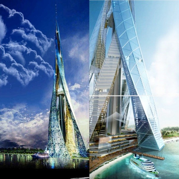 Dubai Towers là cụm công trình gồm 4 tòa tháp tạo hình ngọn đuốc tọa lạc tại quận Lagoons, Dubai. Mỗi tòa tháp có từ 57 đến 94 tầng, trong đó, tầng cao nhất của tổ hợp công trình này cách mặt đất tới gần nửa km.