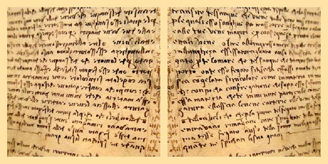 Leonardo da Vinci dùng chữ viết ngược trong hầu hết ghi chép của mình. Người xem phải sử dụng một chiếc gương nếu muốn đọc chúng dễ dàng. Đây có thể là cách để ông tránh người khác "xem trộm" công trình của mình.