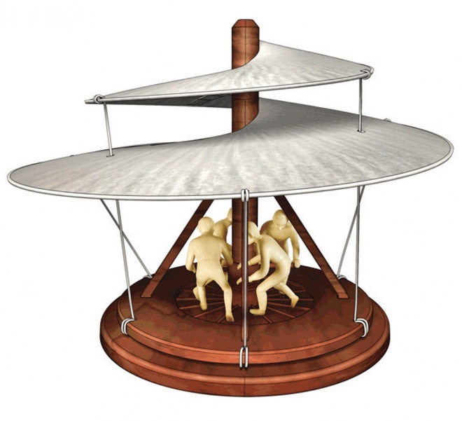 Các nhà khoa học hiện đại cho rằng, thiết kế "máy bay trực thăng" của Da Vinci được vận hành bởi 4 người đàn ông rất khó để bay lên khỏi mặt đất. Nhưng đây vẫn là một trong những ý tưởng nổi tiếng nhất của ông.