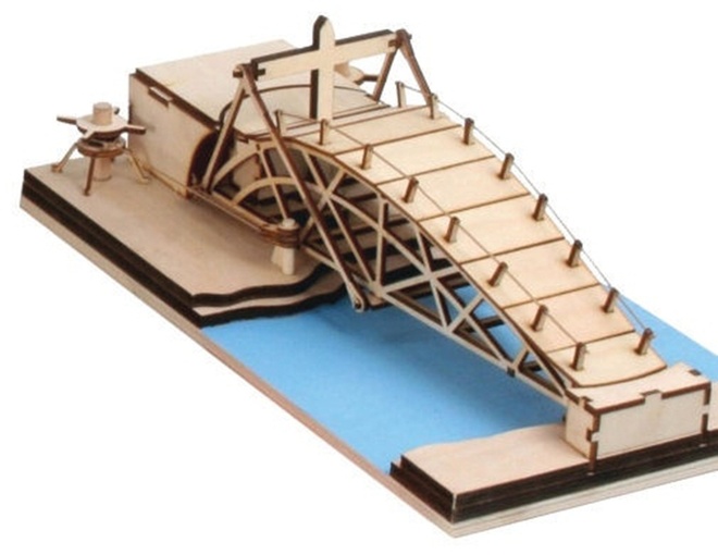 Da Vinci cho rằng một cây cầu di động, có thể quay được, là phương tiện hữu ích trong chiến tranh. Cây cầu được làm từ vật liệu cứng nhưng nhẹ, gắn với hệ thống dây và ròng rọc, cho phép một đội quân di chuyển qua và nhấc nó lên khi cần thiết.
