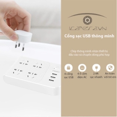 Ổ cắm điện đa năng Pisen Wide USB Multifunction (3USB, 4AC) BH-43