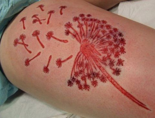 Đối với những người mê mẩn "xăm sẹo", thì đây mới là thú chơi đích thực, vì để có được hình xăm sẹo, khổ chủ phải có gan chịu đau đớn trong một khoảng thời gian dài.