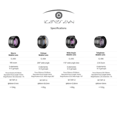 - Bộ sản phẩm đa năng 4 trong 1: Bao gồm ống kính macro, ống kính mắt cá, ống kính góc rộng và ống kính tele.
