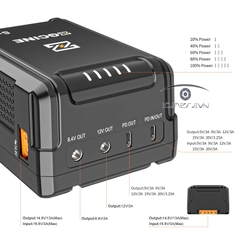 Cấp nguồn cho máy quay video hoặc thiết bị tương thích của bạn bằng cách sử dụng Pin ZG-S200 V-Mount 200Wh của ZGCINE . Pin lithium-ion mạnh mẽ, có thể sạc lại này cung cấp công suất 199,8Wh và nhiều đầu ra nguồn phụ kiện. ZG-S200 có tính năng sạc USB-C PD với bộ sạc 100W có sẵn riêng. Các giao diện bao gồm một thùng 8,4V, một 12V/thùng, một đầu ra USB-C, một đầu vào/đầu ra USB-C và hai đầu ra nguồn D-Tap, cung cấp khả năng tương thích với nhiều loại phụ kiện. Đèn báo nguồn LED năm mức cho phép bạn theo dõi trạng thái sạc của pin.