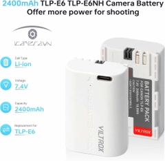 Viltrox LP-E6 dung lượng 2400mAh tích hợp cổng sạc Type-C trực tiếp trên pin dành cho máy ảnh Canon