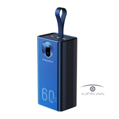- Công suất nguồn: 4 cổng ra 22.5W sạc siêu nhanh 60000 mA