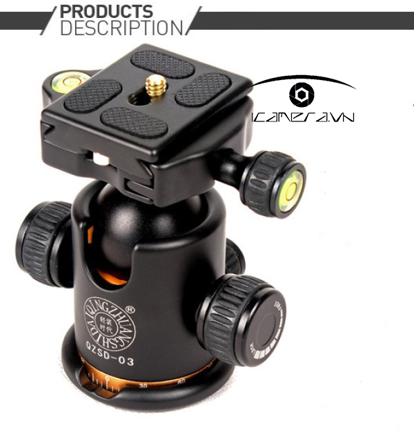 Chiếc Ball head BK-03 ( QZSD-03 ) này cũng được sử dụng để gắn trên đầu tripod giúp người quay phim chụp ảnh có thể điều khiển máy ảnh một cách chắc chắc và linh hoạt hơn.