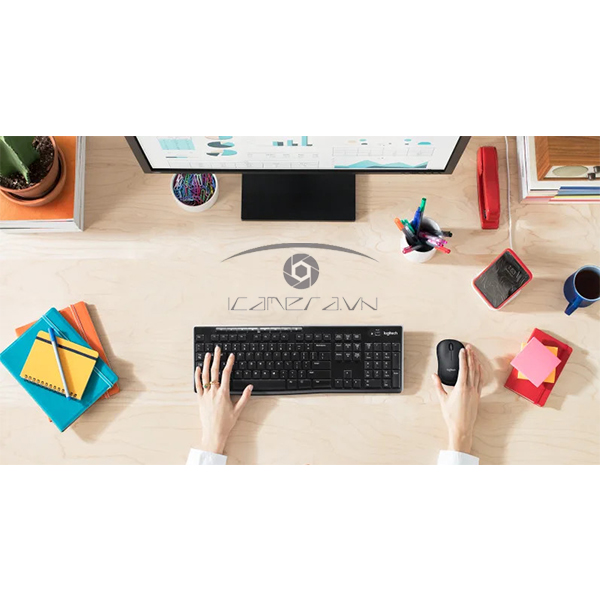 Dễ kết nối, dễ sử dụng. Hãy quên việc rớt và trễ mạng nhờ kết nối không dây mạnh mẽ, đáng tin cậy ở khoảng cách lên tới 10 m4Phạm vi không dây có thể thay đổi theo người dùng, điều kiện môi trường và sử dụng.. K270 đi kèm với đầu thu USB Unifying của Logitech, cho phép bạn ghép cặp tới 6 công cụ Logitech tương thích, do đó bạn có thể thêm chuột Logitech vào cùng một đầu thu. Ít dây hơn, ít rắc rối hơn, và một luồng công việc dễ dàng.