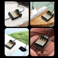 - 4 ngăn sạc, sạc từng viên hoặc cả 4 viên đồng thời