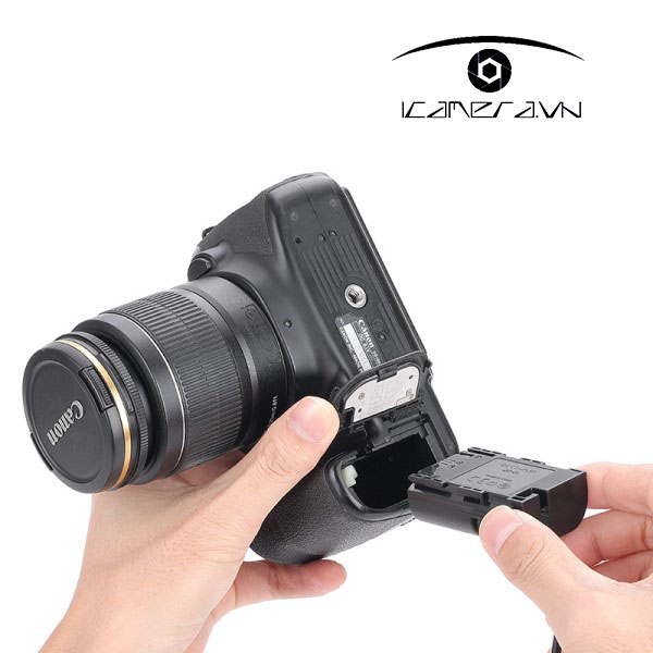 Thiết kế thân pin vừa với máy ảnh, cắm vào và lấy ra thoải mái, không bị kẹt.