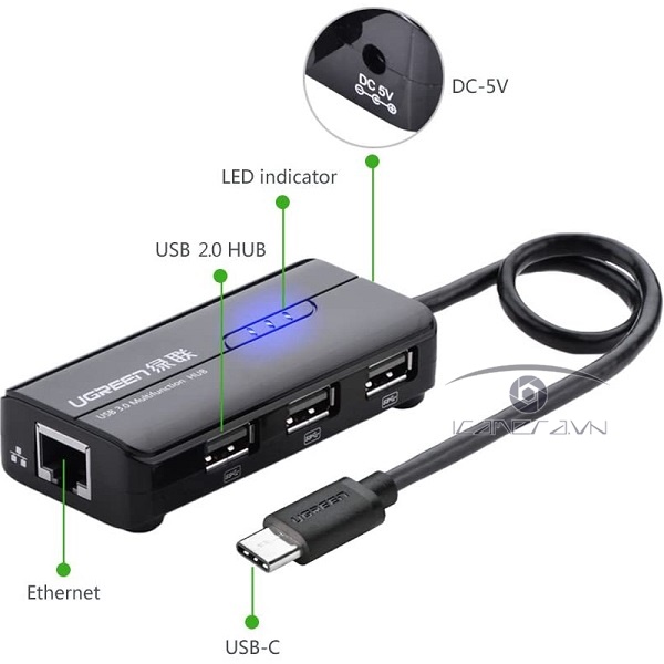 Tính năng chính cáp USB Type C to Lan và 3 cổng USB 2.0 Ugreen 30289