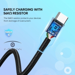 Dây cáp USB Type C được tích hợp chip thông minh với nhiều lớp bảo vệ bên trong, điện trở kéo lên 56KΩ cấp độ dẫn điện đáng tin cậy và dòng sạc ổn định, bảo vệ điện thoại của bạn khỏi bị hư hỏng do quá dòng hoặc quá áp.