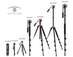 - Chân máy có thể chuyển đổi thành chân máy đơn để chụp ảnh và chiều cao tối đa có thể nâng lên tới 211cm khi gắn thêm trục trung tâm.