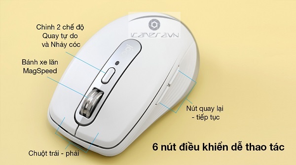 Đặc biệt, chuột không dây Logitech MX Anywhere 3 xám có bánh xe lăn điện từ MagSpeed cuộn yên tĩnh, mượt mà, độ chính xác đến từng pixel, có khả năng cuộn được 1000 dòng/giây, nó còn tự chuyển chế độ Quay tự do khi bạn cuộn nhanh để xử lý tài liệu tối ưu hơn
