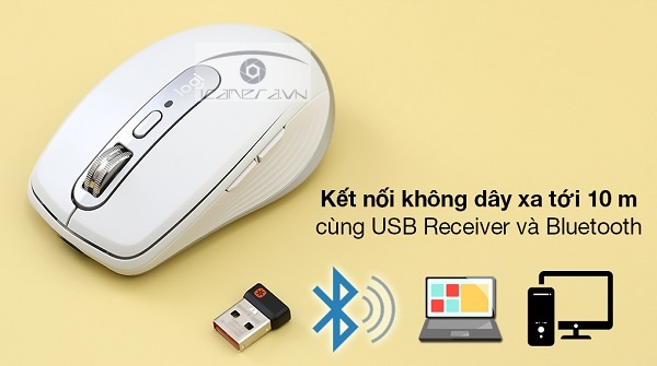 - Làm việc với các thiết bị dễ dàng qua kết nối không dây với USB Receiver (đầu thu USB) hoặc Bluetooth