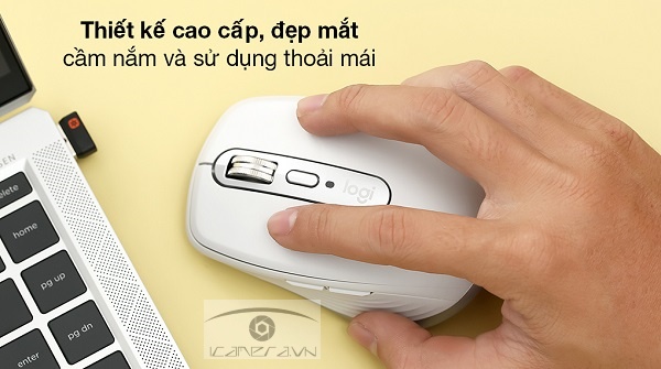 Thiết kế chuột không dây nhỏ gọn, màu xám thanh lịch, vật liệu cao cấp với thân chuột bền chắc, viền silicone dẻo dai, êm ái khi cầm nắm, con lăn MagSpeed bằng thép gia công không rỉ sét, bóng sáng giúp tăng tính thẩm mỹ Logitech MX Anywhere 3.