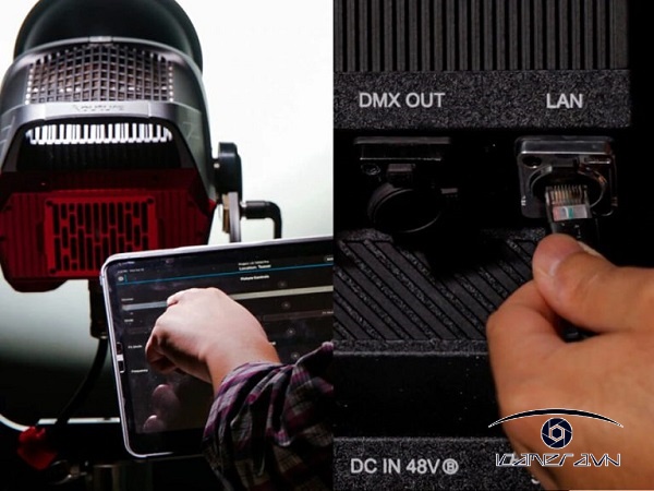 Ngoài các điều khiển trực tiếp trên đèn, điều khiển từ xa 2.4G và khả năng tương thích ứng dụng Sidus Link, LS 1200d Pro là đèn Aputure đầu tiên hỗ trợ đồng thời sACN, Art-Net, 5-Pin DMX512 In & Out và khả năng tương thích LumenRadio CRMX
