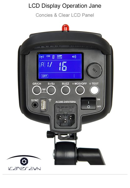Đèn còn có thể gắn thêm các phụ kiện tạo hình ánh sáng khác nhau. Màn hình LCD chất lượng cao, giúp hiển thị các thông số cần thiết để bạn dễ dàng kiểm soát thiết bị của mình.