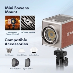 Thiết kế mới với nết cổ điển sang trọng .Sử dụng công nghệ ánh sáng liên tục LED COB hiện đại nhất được tích hợp trong lớp vỏ hợp kim nhôm đúc chắc chắn rất phù hợp để sử dụng trong ghi ảnh và quay video ..