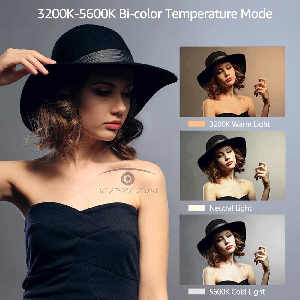 Đèn có thể thay đổi màu ảnh sáng từ 3200K - 5600K cho iệu ứng ánh sáng theo mong muốn người dùng. Bạn có thể chỉnh trực tiếp trên đèn hoặc chỉnh bằng điều khiển từ xa