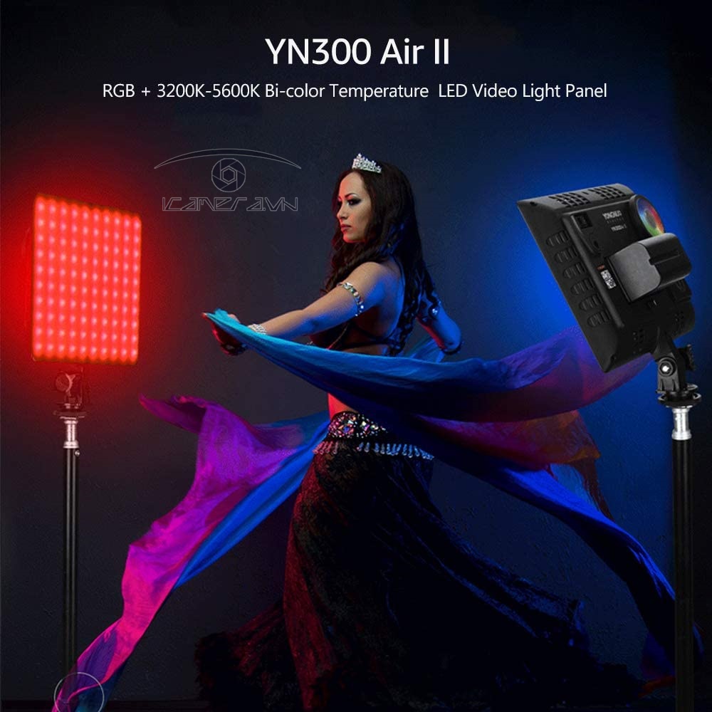 Đèn LED Yongnuo YN300Air II RGB là sản phẩm mới nhất của hãng này được sản xuất năm 2020. YN300Air II RGB là sự phát triển dựa trên chiếc YN300 Air thế hệ đầu tiên. Đèn YN300Air II được trang bị 208 bóng LED siêu sáng bao gồm 100 bóng led 3200K – 5600K và 108 bóng led RBG. Điều khiển từ xa có thể tách rời có nhiều tính năng mới với khoảng cách kết nối đến 15m.