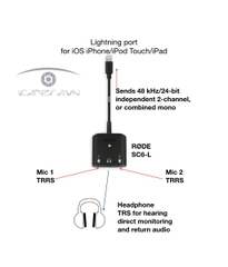 Với hai đầu vào TRRS và một đầu ra tai nghe âm thanh stereo, SC6-L có thể được sử dụng với hai micrô RODE smartLav + và tai nghe, cho phép theo dõi và nghe lại âm thanh, thuận tiện cho các tình huống phỏng vấn. SC6-L cũng có thể được sử dụng với các loại Videomic của RØDE kết hợp với bộ điều hợp TRRS, ví dụ như SC4 và SC7.