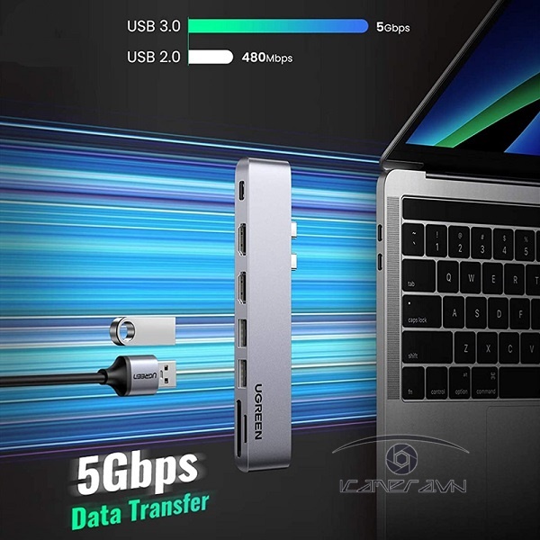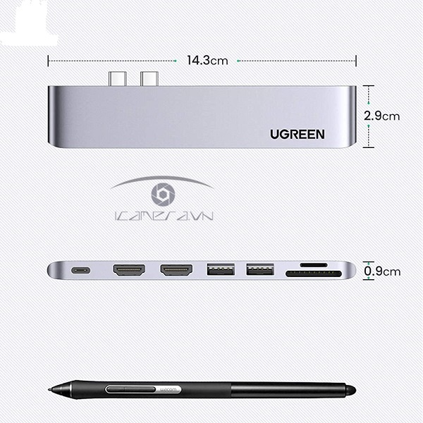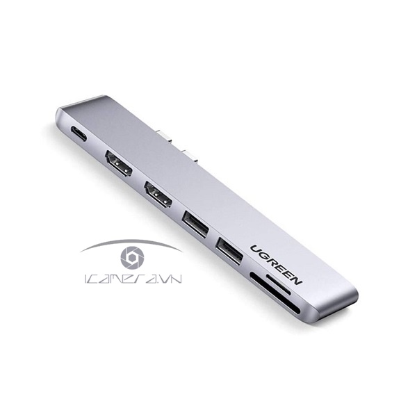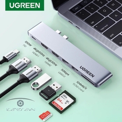 Hub USB Type C Ugreen 80548 mở rộng cổng kết nối cho laptop của bạn với 2 đầu ra video HDMI, 2 USB 3.0, đọc thẻ SD và TF, cổng sạc USB Type C.